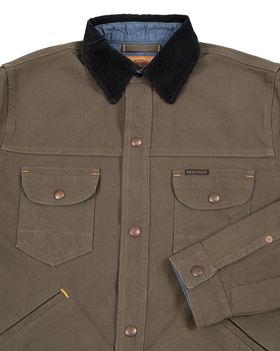 【Indigofera】Fargo Quarter Jacket, Smithson Canvas, Dark Olive 深橄欖色重磅帆布短版卡車夾克