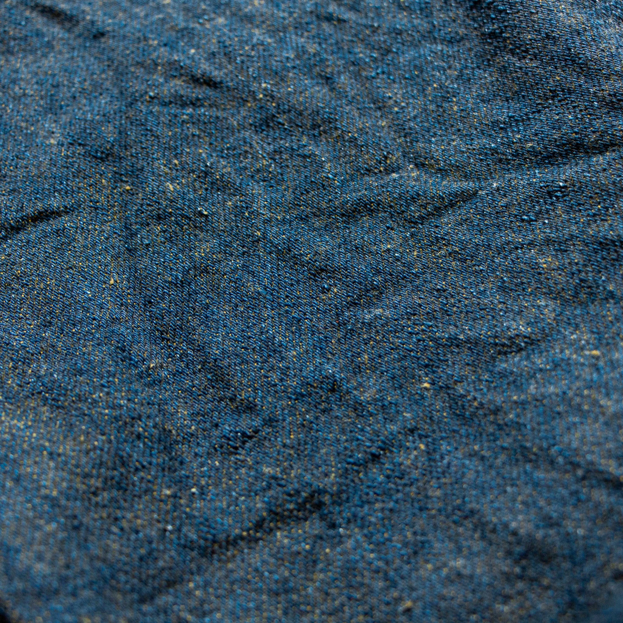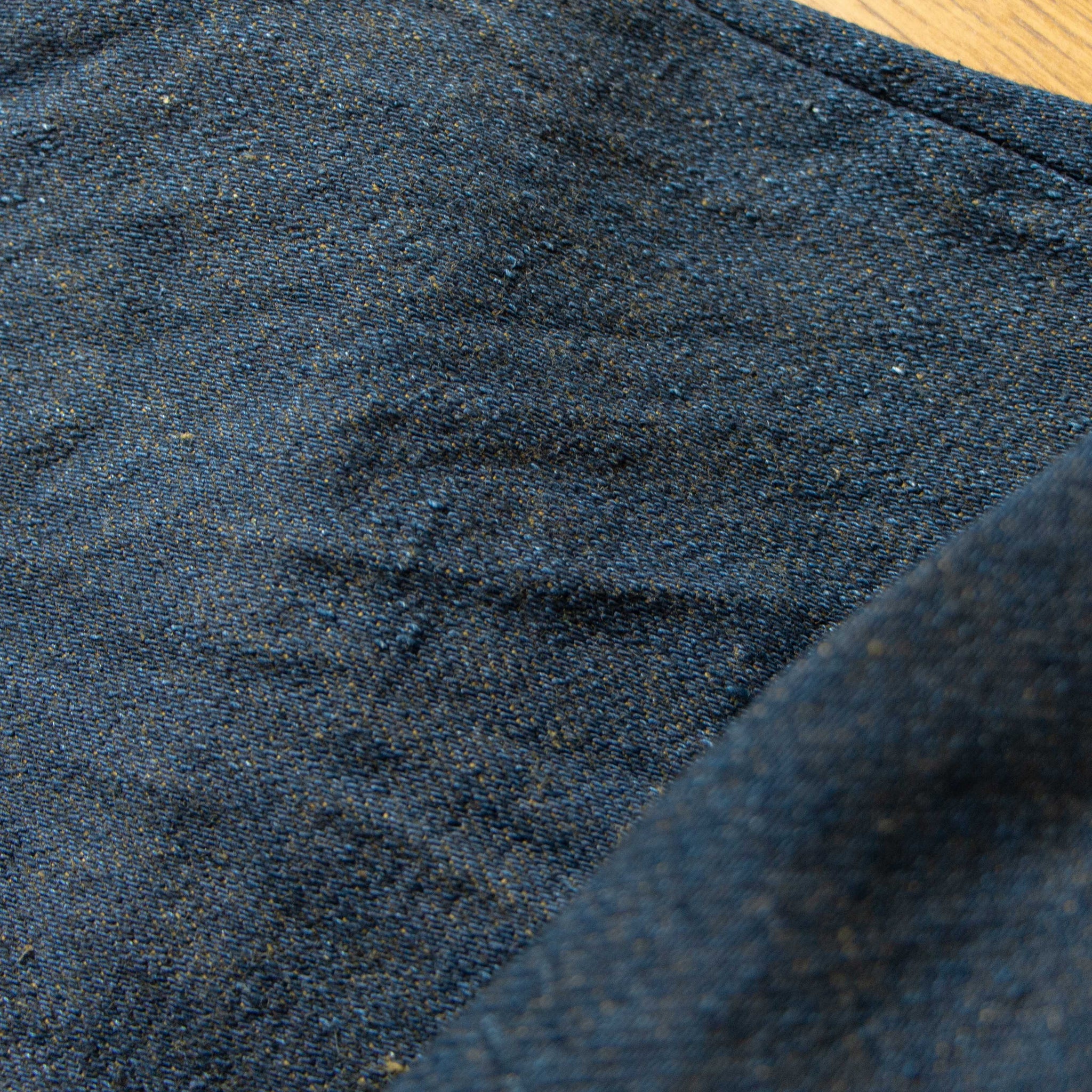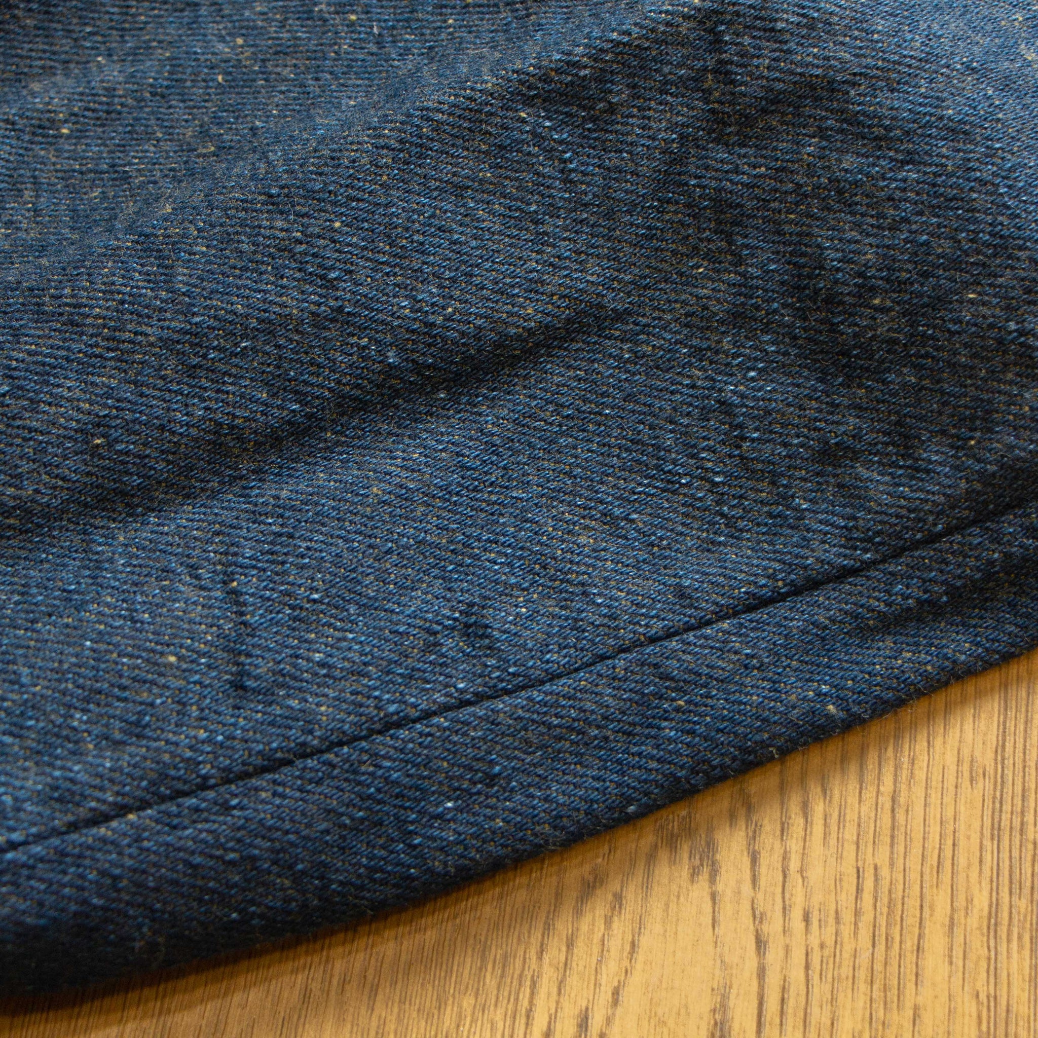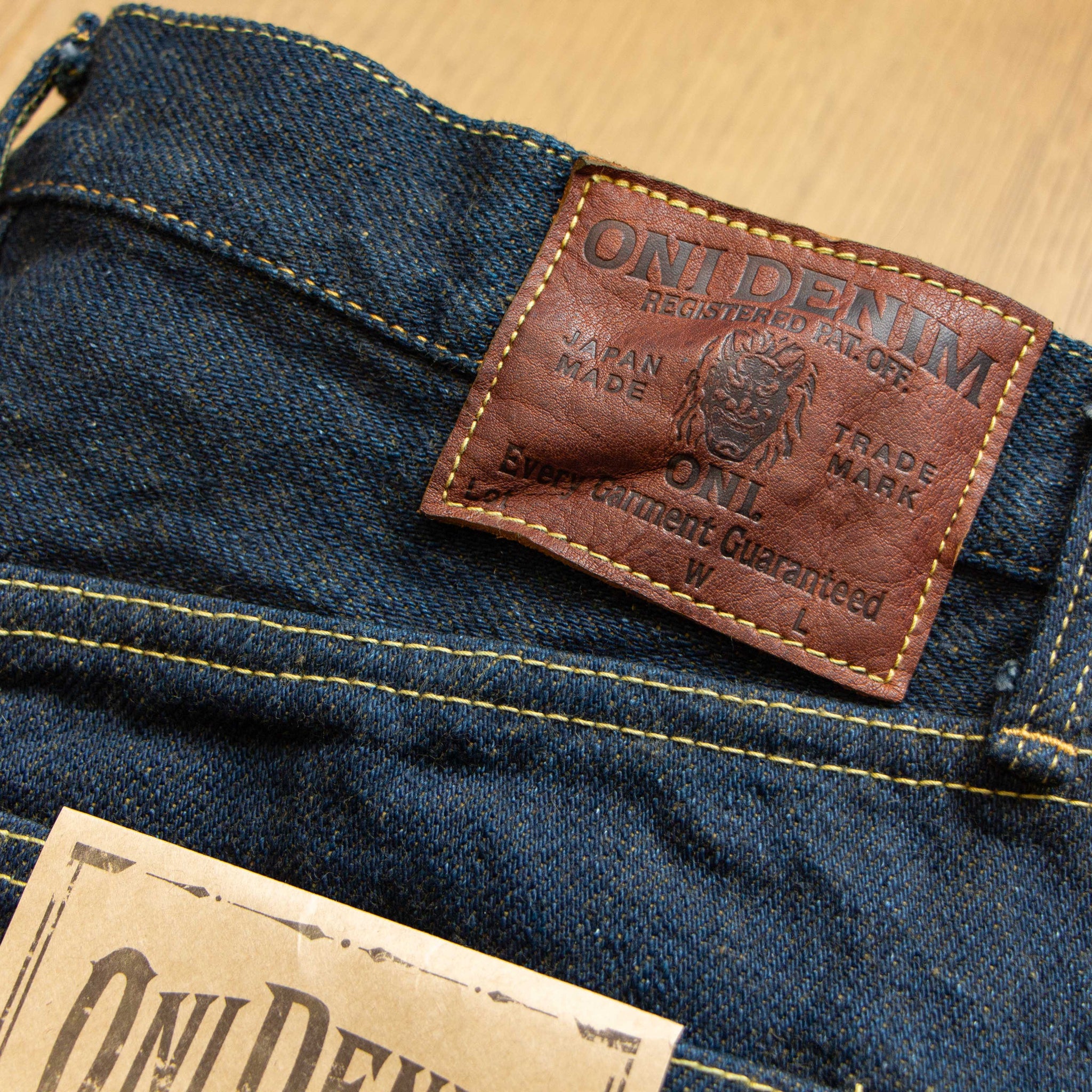 古董Levi’s所使用的紗線號數為6x7號線,這是典型的復古牛仔褲會使用的紗線配置,而ONI大膽地使用了3.7x3.7的極粗紗,原料的選用上混和了三種不同的棉花,在老式織布機上以ONI擅長的超級低張力進行織布,成品手感既厚而不像紙板,既粗糙佈滿毛感而不至於令人退卻,ONI為了達到特殊的布面藍色色調,對於每一塊布料的緯紗都會進行特殊調色,為達到「鬼秘」獨特的藍色澤,內面特意染色為米白色紗,質感溫潤並且上腳之後完全不咬腳。(或是說咬腿?)