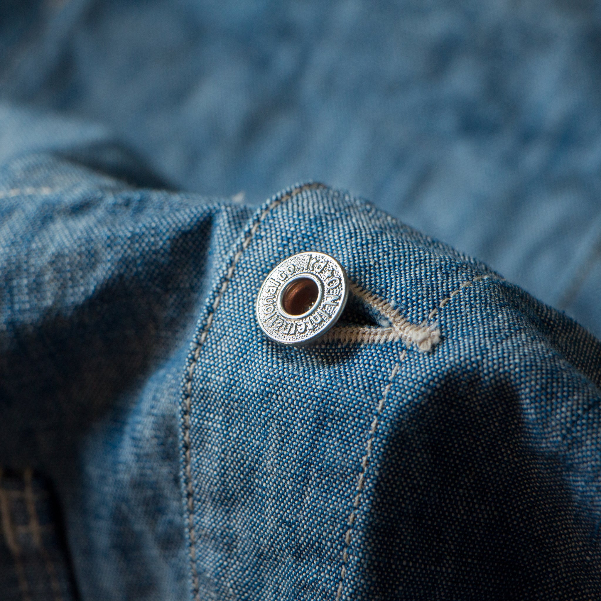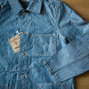 Overturn conventional chambray expectations. The ONI 03501-SHVCH 13oz Super Heavy Chambray Coverall is a modern reinterpretation of the classic chore jacket. Crafted from an unusually heavy and richly textured 13-ounce cotton blue selvedge chambray fabric. This jacket features a unique slub and nep texture exclusive to ONI Denim, achieved through a loose weave that delivers a thickness comparable to denim. The fabric's heavyweight specification ensures durability and a robust feel, making it suitable for rugged wear while maintaining the classic workwear aesthetic.