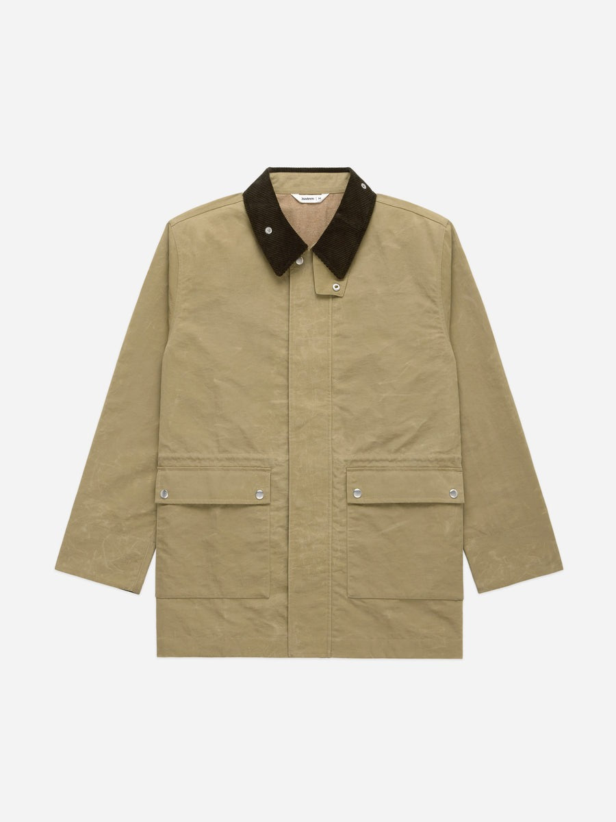 3sixteen updated the fabric selection to a waxed nylon shell with a cotton flannel body lining coupled with cupro sleeve linings. The waxed nylon fabric has the water repellency you'd expect from a waxed canvas but without the tacky hand feel, making for a jacket that's perfect for inclement weather or daily wear. The Country Jacket also features an interior waist cinch, throat latch, and corduroy collar and cuff lining that can be folded back. It's finished off with nickel hardware and a YKK double zipper. The fit is relaxed and built with layering in mind.