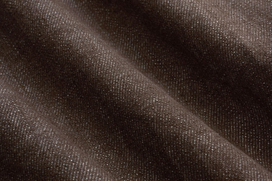 The 3sixteen version features side-insert elastic waists for comfort and ease of sizing, combined with belt loops to allow you to hide the elastic. The pants are crafted of a hefty brown Japanese denim to make these an easy everyday piece. The fabric has a rich brown hue with a subtle snowy effect from the white weft. The pants have been given a rinse for comfort but still maintain a crunchy hand.