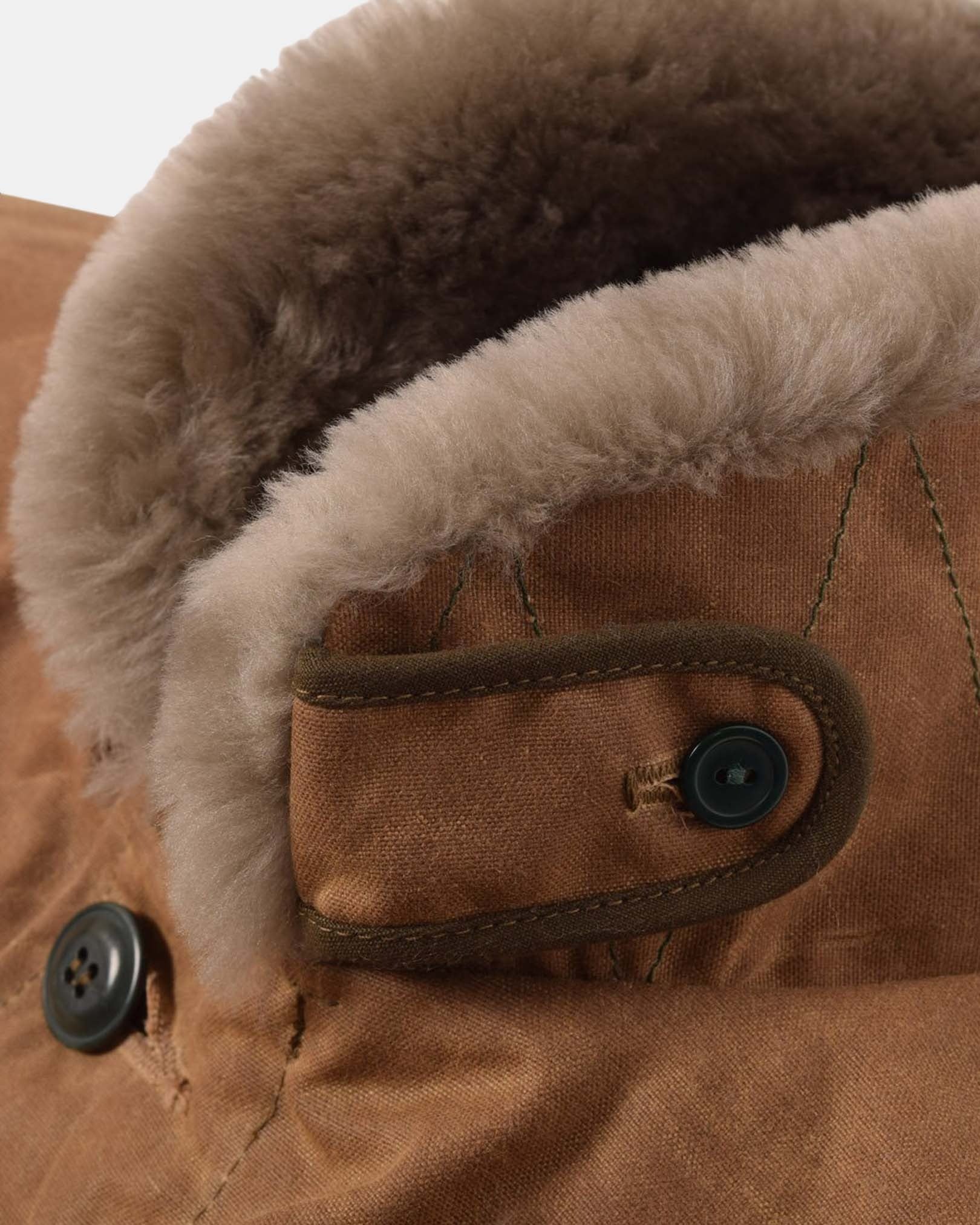 The influence of WWII on the American culture is alive and well 70+ years after victory. Dehen 1920 introduces their very own and very special version of the Naval N-1 Deck Jacket. Constructed of 10 oz. waxed canvas outer shell with a luxurious mouton fur lining, this jacket represents the very best Dehen have to offer. Warmer and more substantial than anything in its class, this garment is built to last a lifetime.