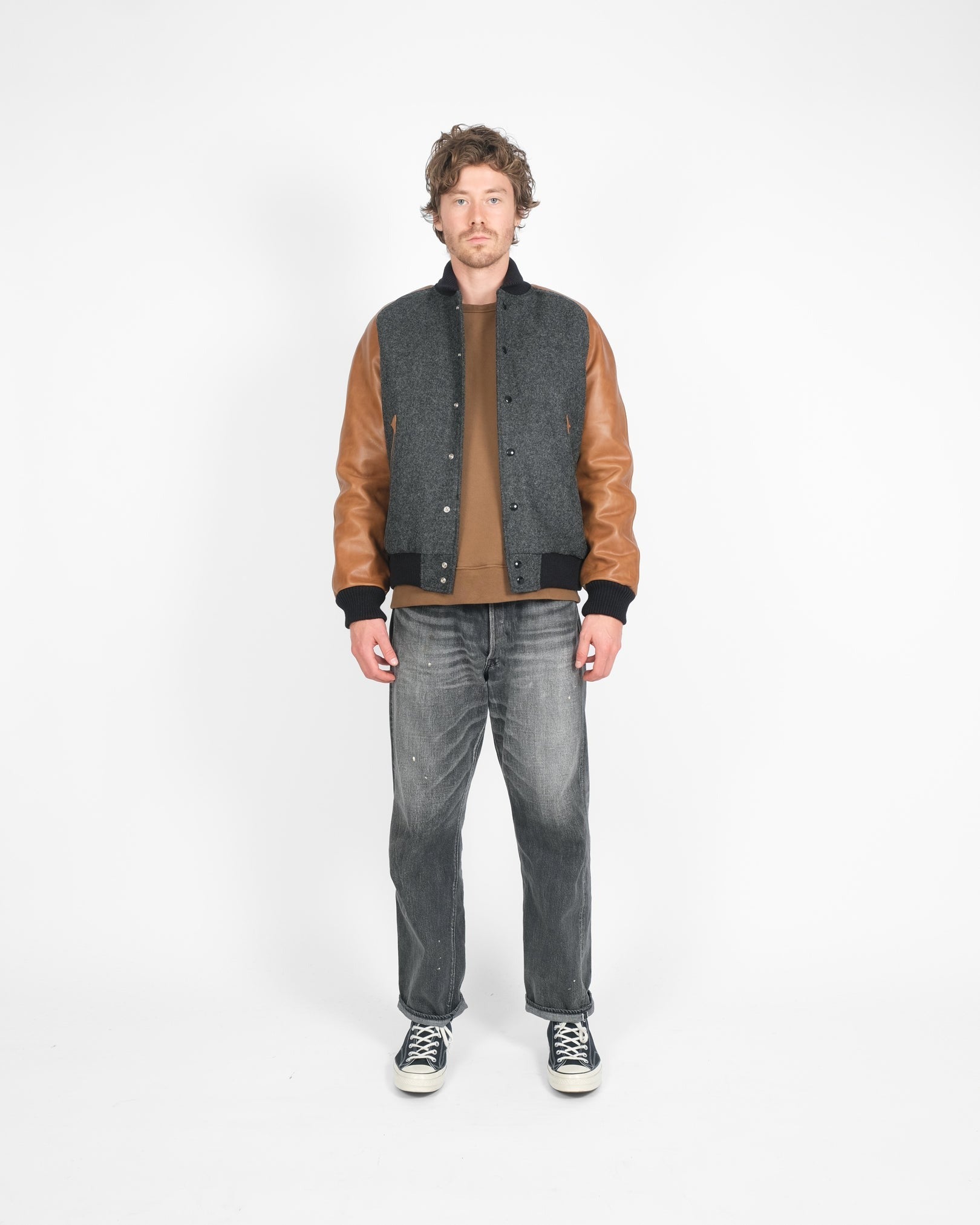 【Dehen 1920】Raglan Varsity Jacket - Granite, Black, Antique Rust