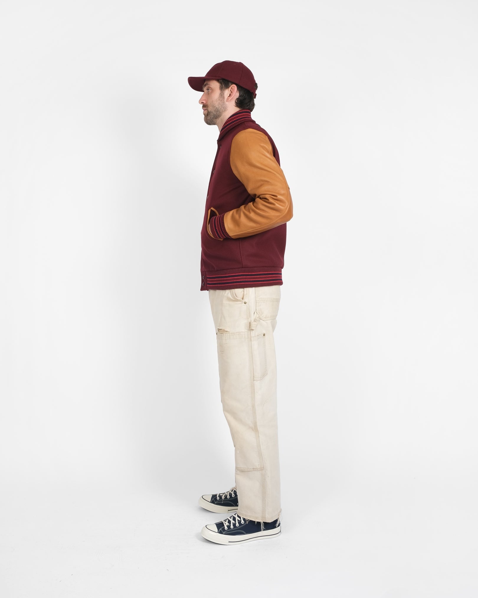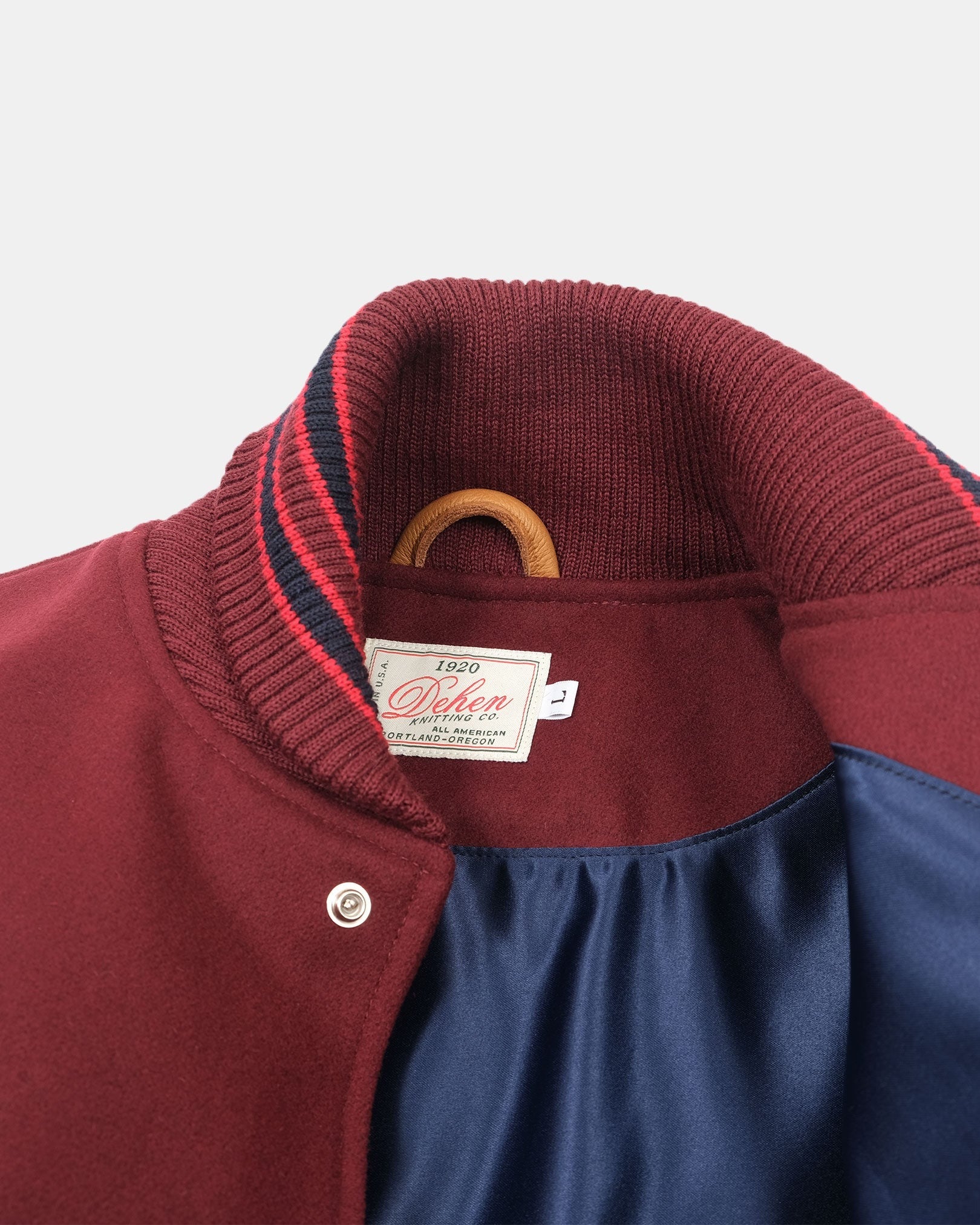 【Dehen 1920】Varsity Jacket - Burgundy, Navy & Scarlet, Rust Leather