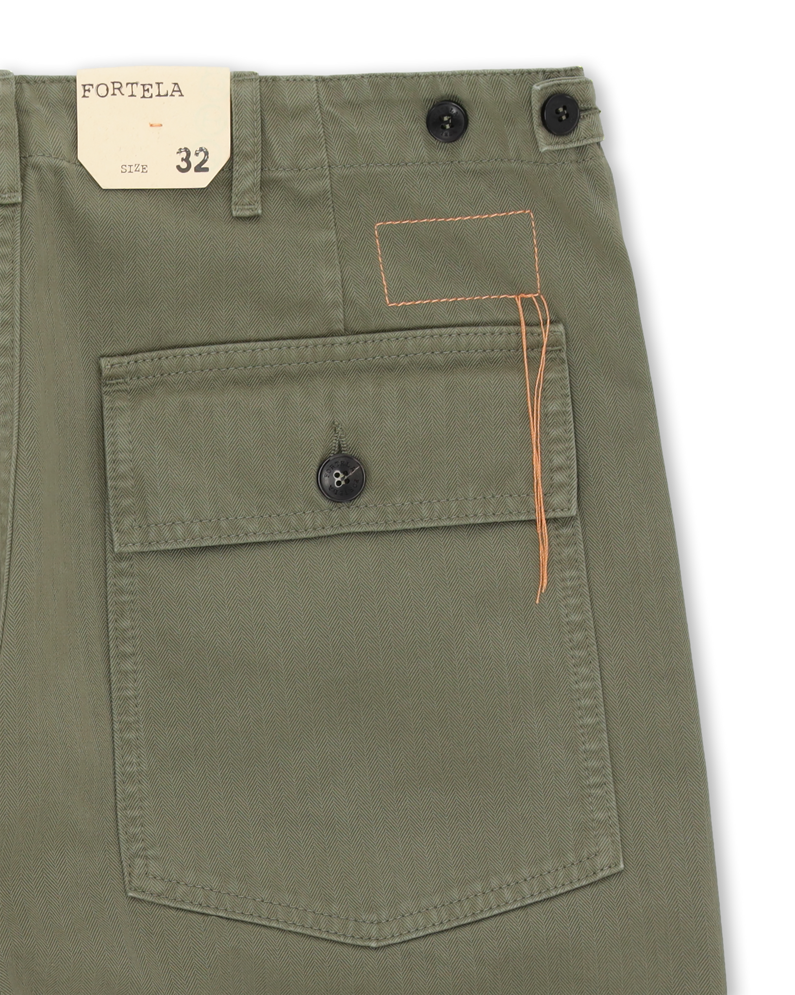 【Fortela】New Fatigue Herringbone Cotton Fatigue Trousers Green