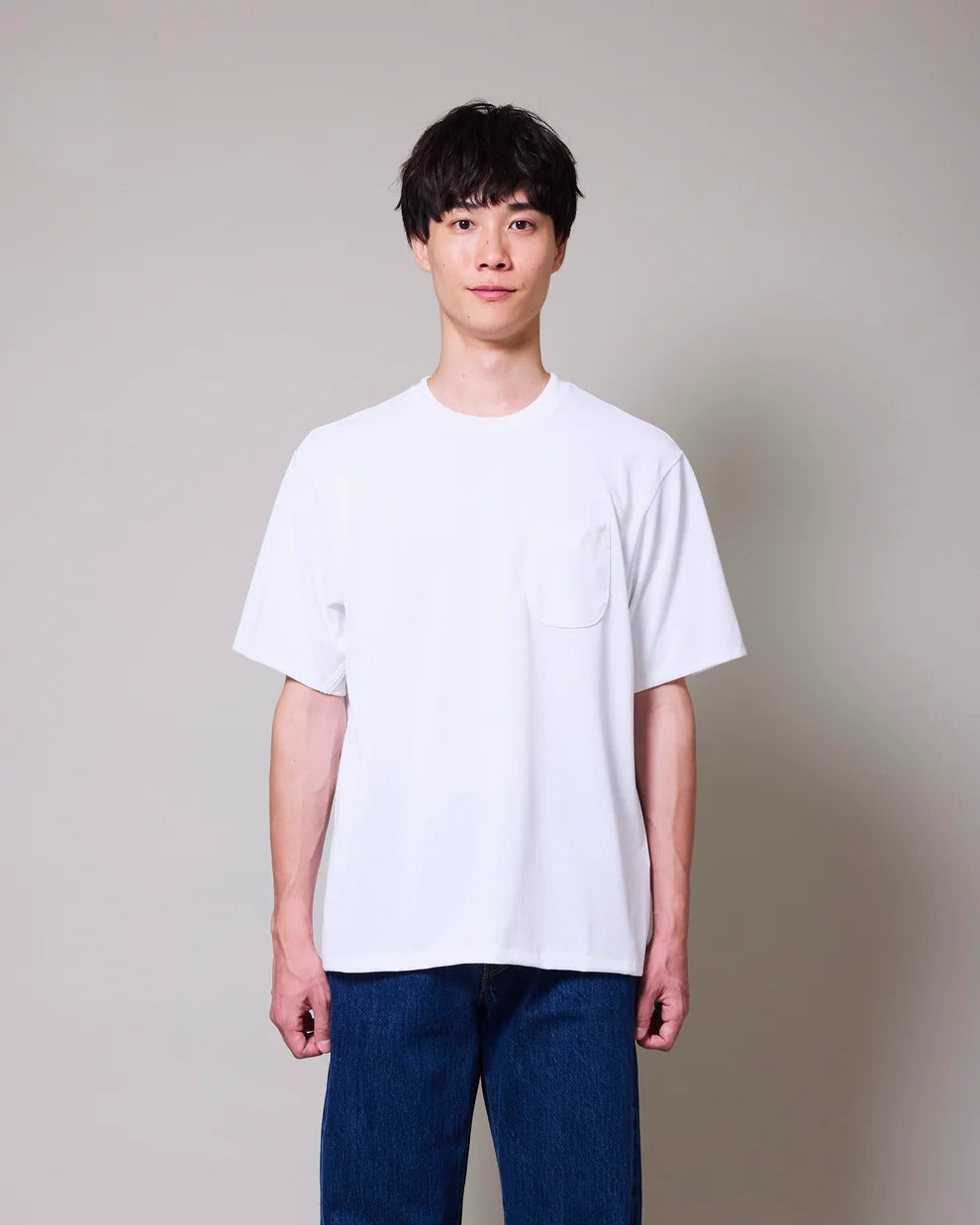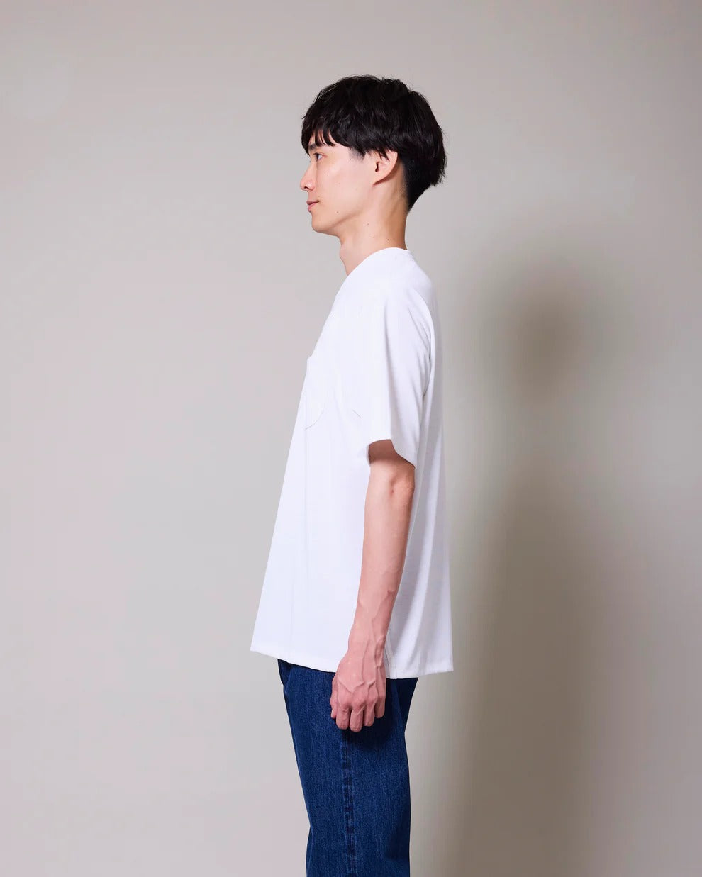 Made from polyester by design rather than the usual natural fibers, this piece reflects HAND ROOM’s intent to combine everyday functionality with a cotton-like wearing experience.