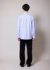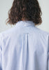 Buttons are made from white mother-of-pearl, offering a clean, refined sheen. The collar button is hand-attached, preventing loose threads or visible stitching from the back.