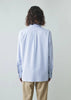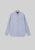 The fabric is made from 100% premium American Pima cotton, woven in a yarn-dyed oxford construction. It offers a smooth, soft hand feel with clear color definition. It can be worn naturally or pressed for a more structured look, making it a versatile piece for everyday wear.
