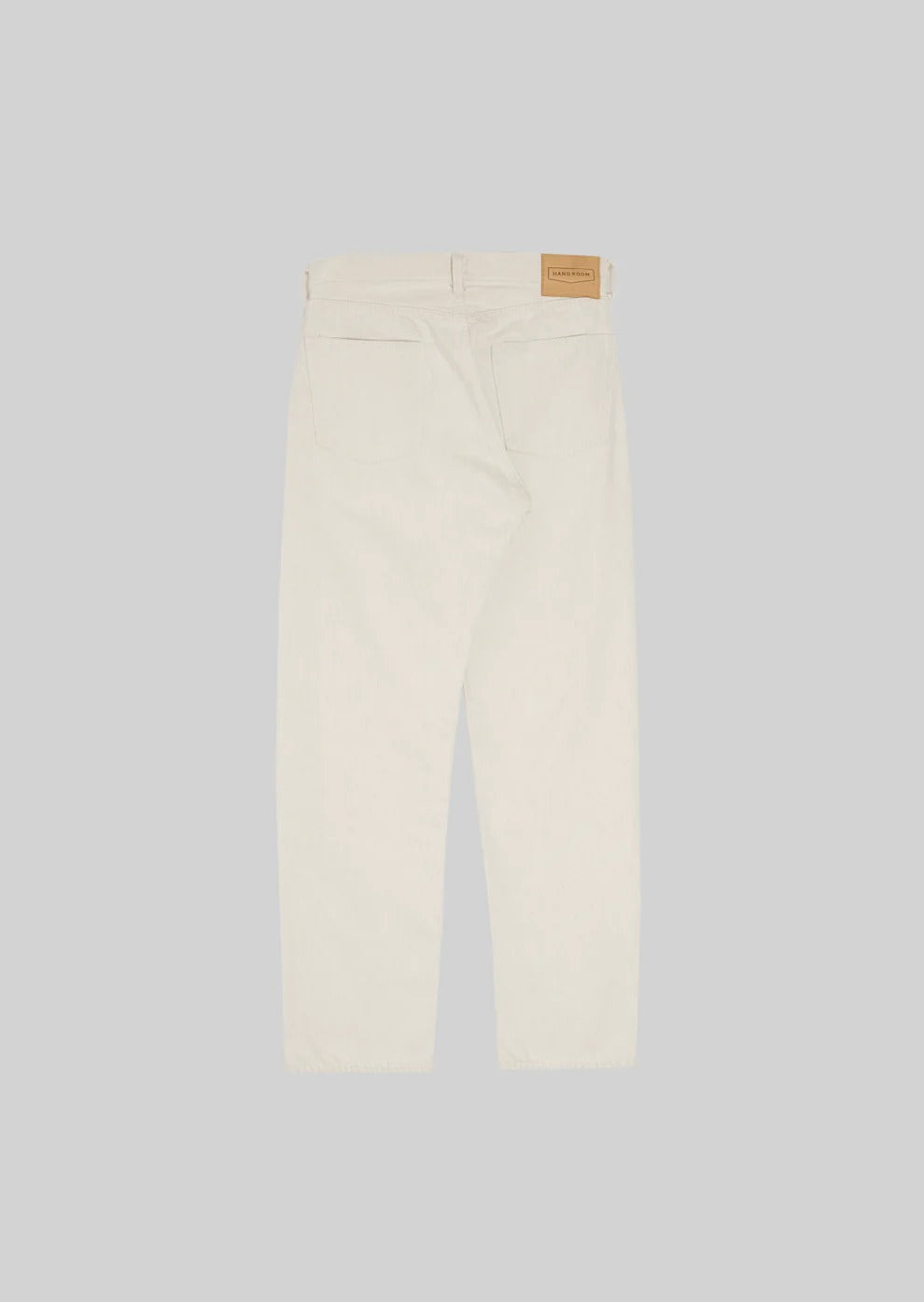 HAND ROOM JEANS white denim, made from 100% cotton fabric with water-repellent and stain-resistant properties. It easily repels rain and everyday splashes while remaining breathable. In most cases, spills like coffee or juice can be wiped off before they soak into the fabric.