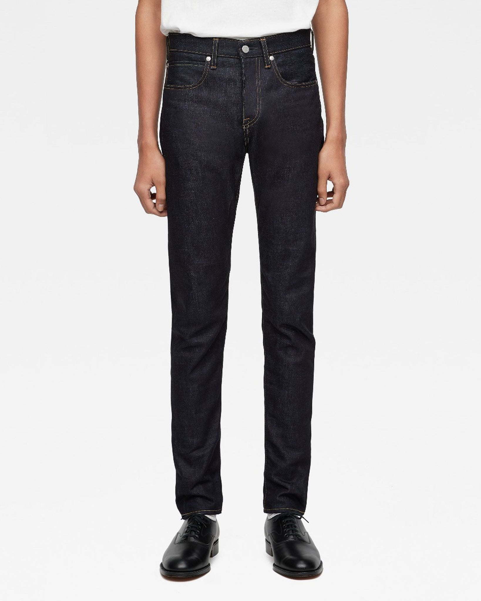 #300 is the slimmest slim-fit model.Tapered from the inseam to the hem for a lean and refined slim silhouette.