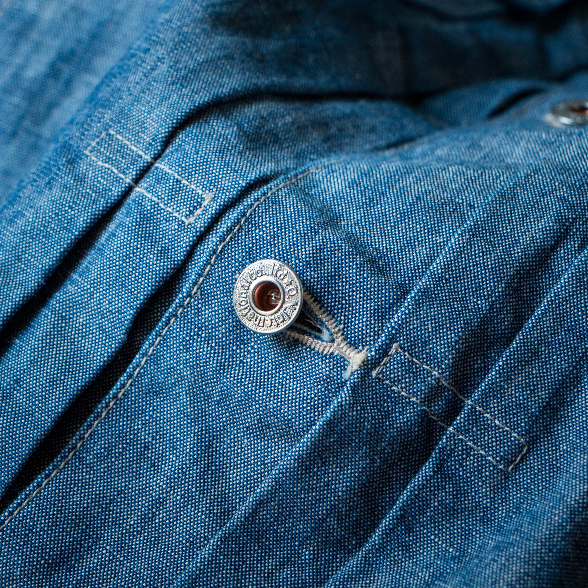 Overturn conventional chambray expectations. The ONI 02516P-SHVCH 13oz Super Heavy Chambray Type II Jacket is a modern reinterpretation of the classic Type II denim jacket. Crafted from an unusually heavy and richly textured 13-ounce cotton blue selvedge chambray fabric. This jacket features a unique slub and nep texture exclusive to ONI Denim, achieved through a loose weave that delivers a thickness comparable to denim. The fabric's heavyweight specification ensures durability and a robust feel, making it suitable for rugged wear while maintaining the classic workwear aesthetic.