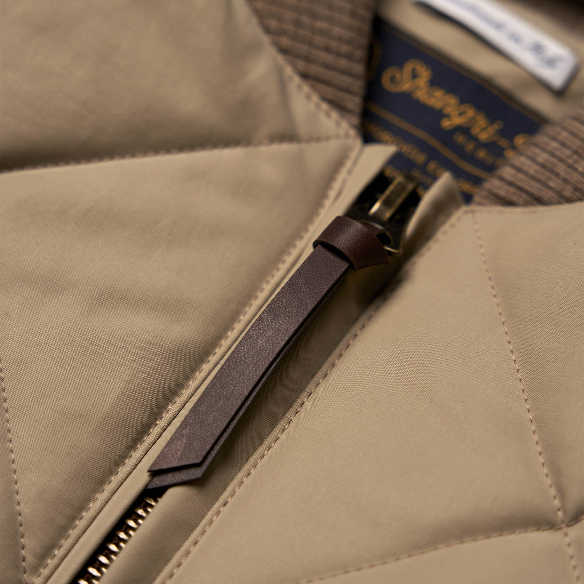 Inspired by 1950s Skyliner Jackets and revisited with a distinctive Italian touch, the “Alaska” Olive Skyliner Jacket represents an authentic garment made with Comfortemp® Thermo-Fibre Padding and an external layer crafted from Olmetex® 60/40 fabric — a technical textile masterpiece made in Como, Italy since 1952.