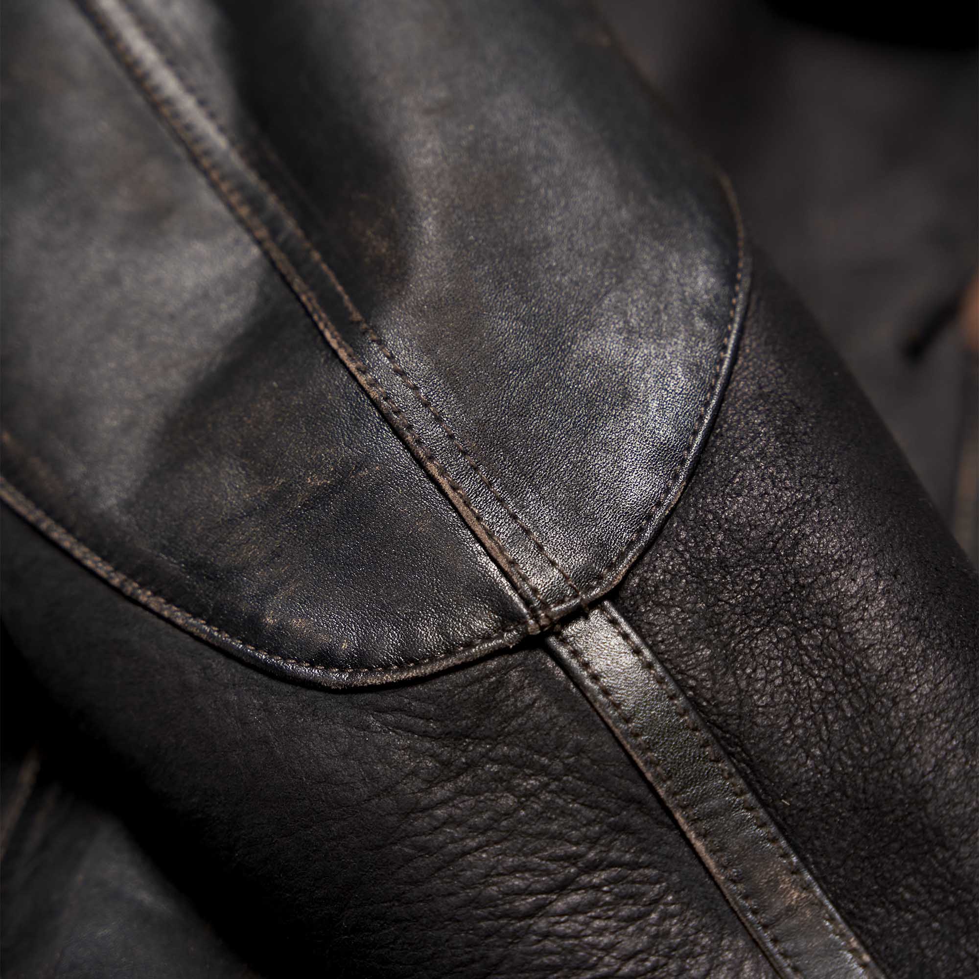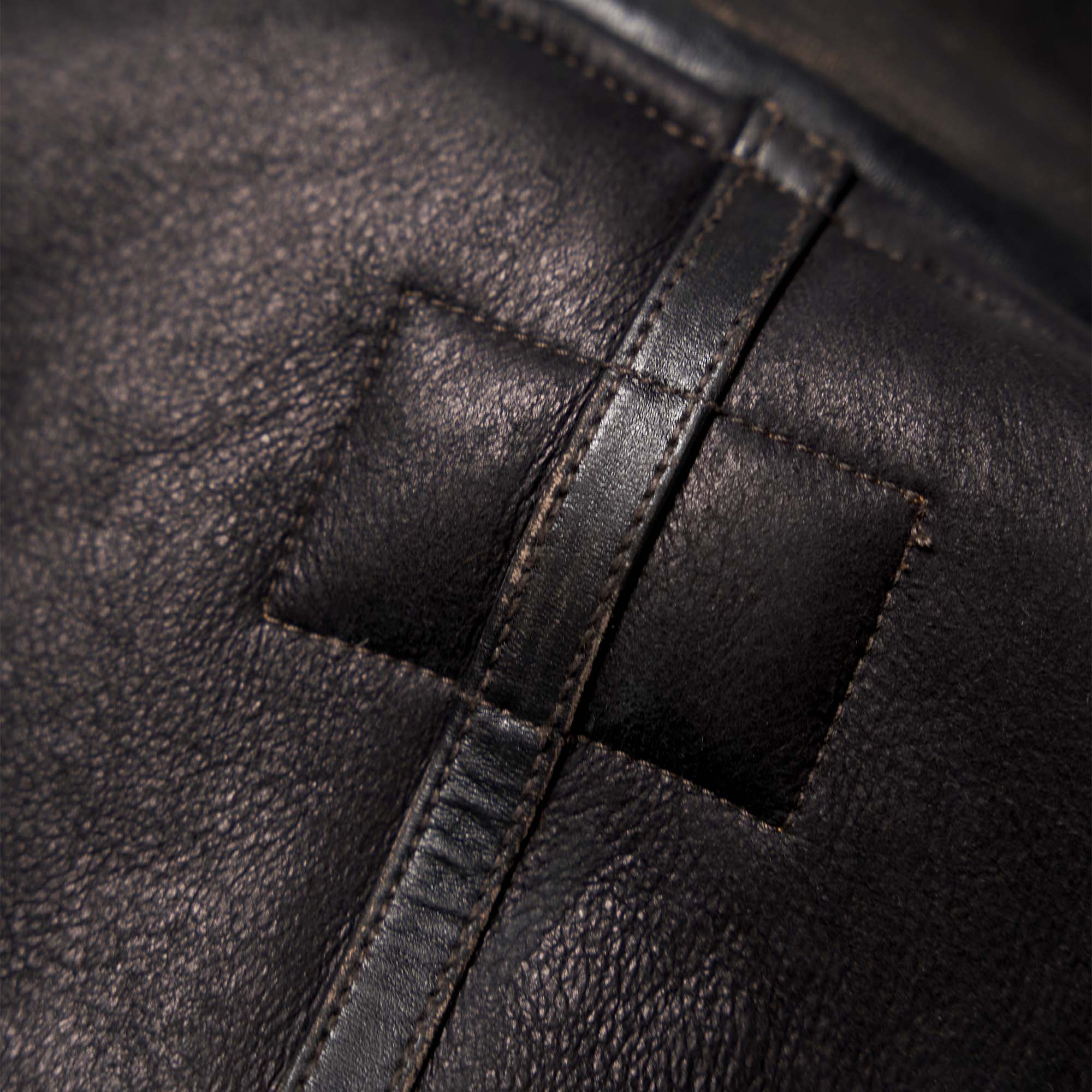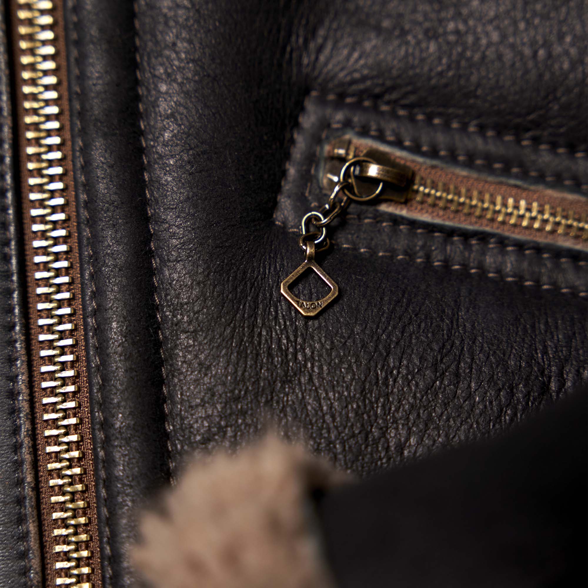 Our Italian Merino Shearling, tanned in a small Tuscan tannery, is first-grade sheepskin — one of the softest yet most durable leathers in the world. It ages beautifully, developing rich fades, creases, and a deep patina. Naturally resilient, its fibers make the “Aviatore” exceptionally strong and long-lasting — a true lifetime jacket.
