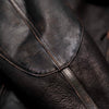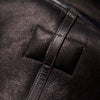 The Full Grain Tea-Core Steerhide trims are hand-aged for a true vintage appearance. Over time, the black surface gradually reveals the lighter natural tone beneath, creating striking shades of golden brown that tell a unique story with wear.