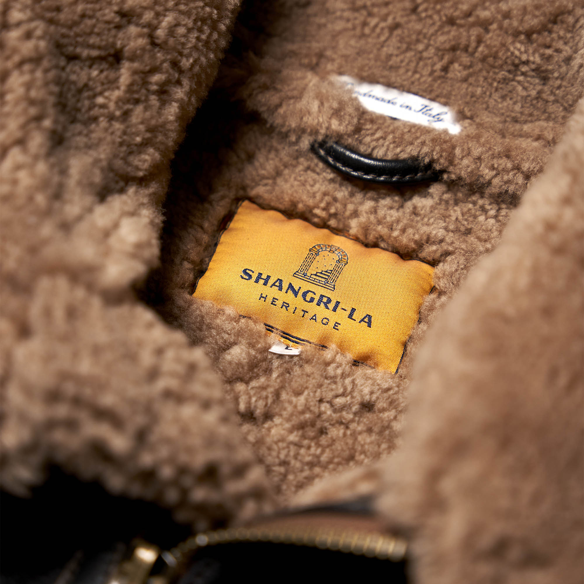 Inspired by early 1940s Type B-3 Flight Jackets from the Second World War and revisited with a distinctive Italian touch, the “Aviatore” B-3 Shearling Jacket represents an authentic garment made of Italian Merino Shearling Sheepskin reinforced with trimmings in Full Grain Tea-Core Steerhide from Vicenza, Italy.