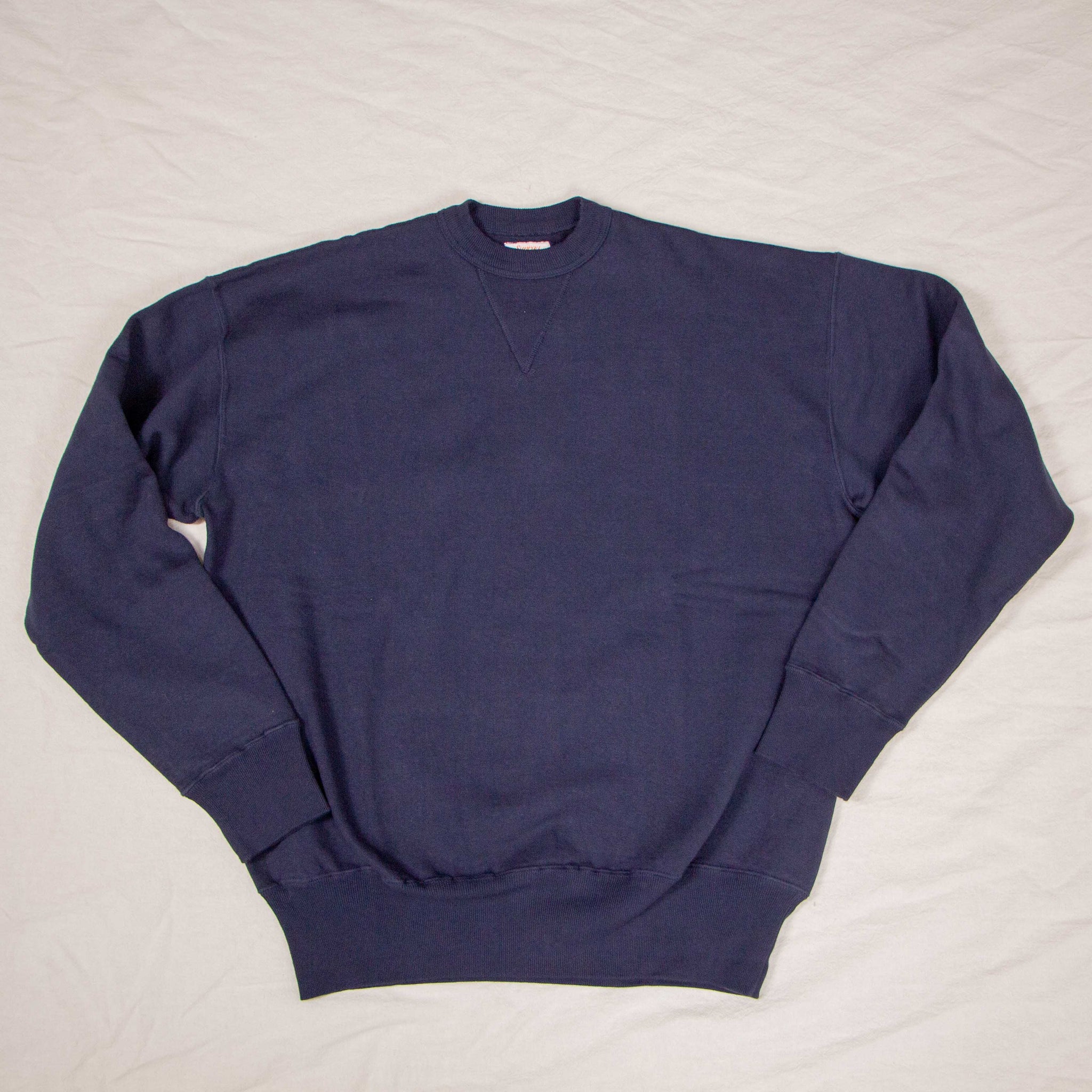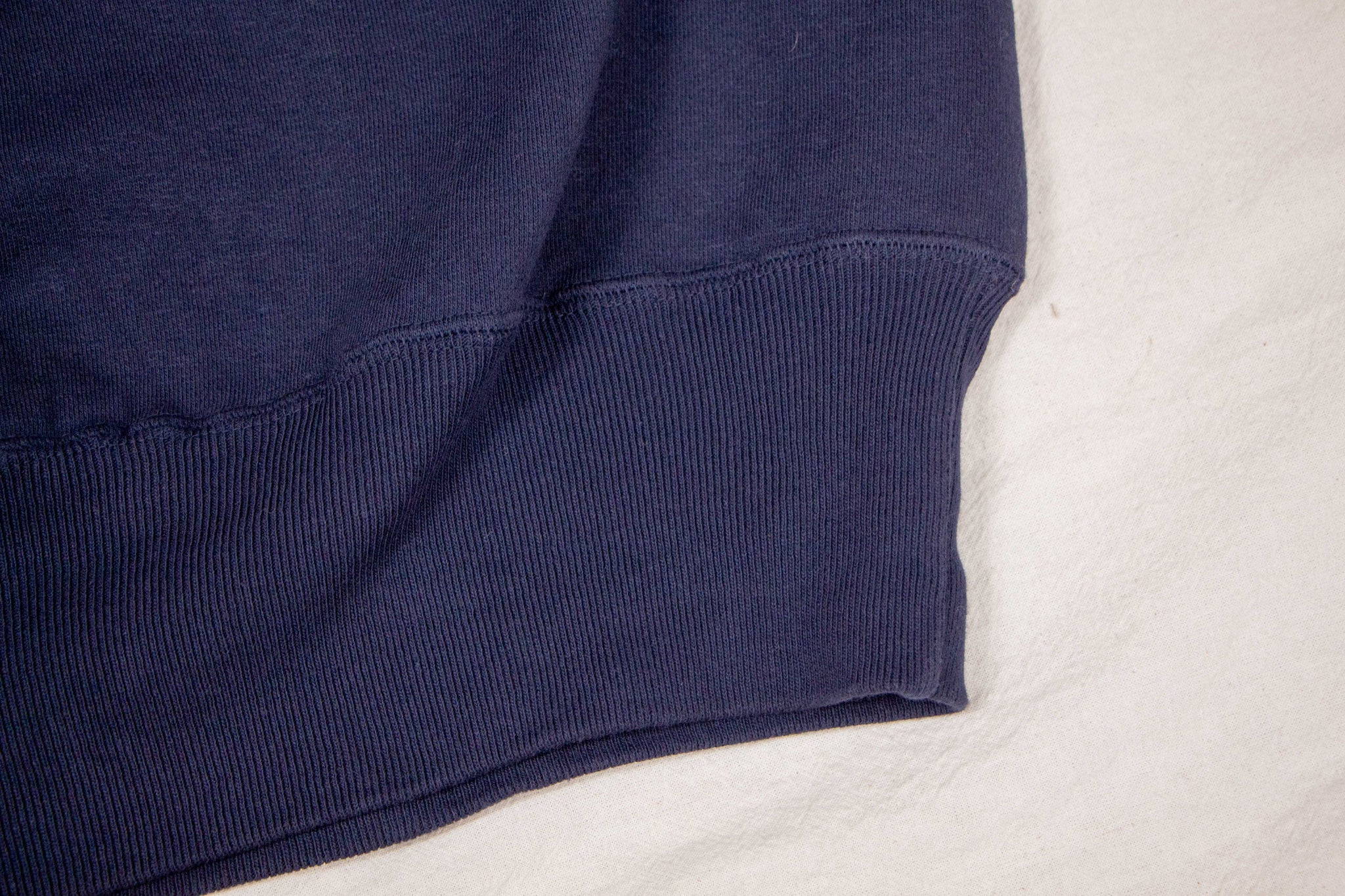 The Laniakea sweater from Sunray Sportswear is crafted from 450 gsm recycled Japanese cotton, offering superb comfort and a soft, heavy handle. It features a classic crew neckline with retro-inspired rib design and is cut in a relaxed, slightly boxy fit that is somewhat shorter than modern fits. The design includes vintage details such as a “Doritos” gusset at the neckline and a drop shoulder for ease of movement, blending 1950 American sportswear aesthetics with traditional Japanese craftsmanship using slow, heritage loopwheel knitting machines.