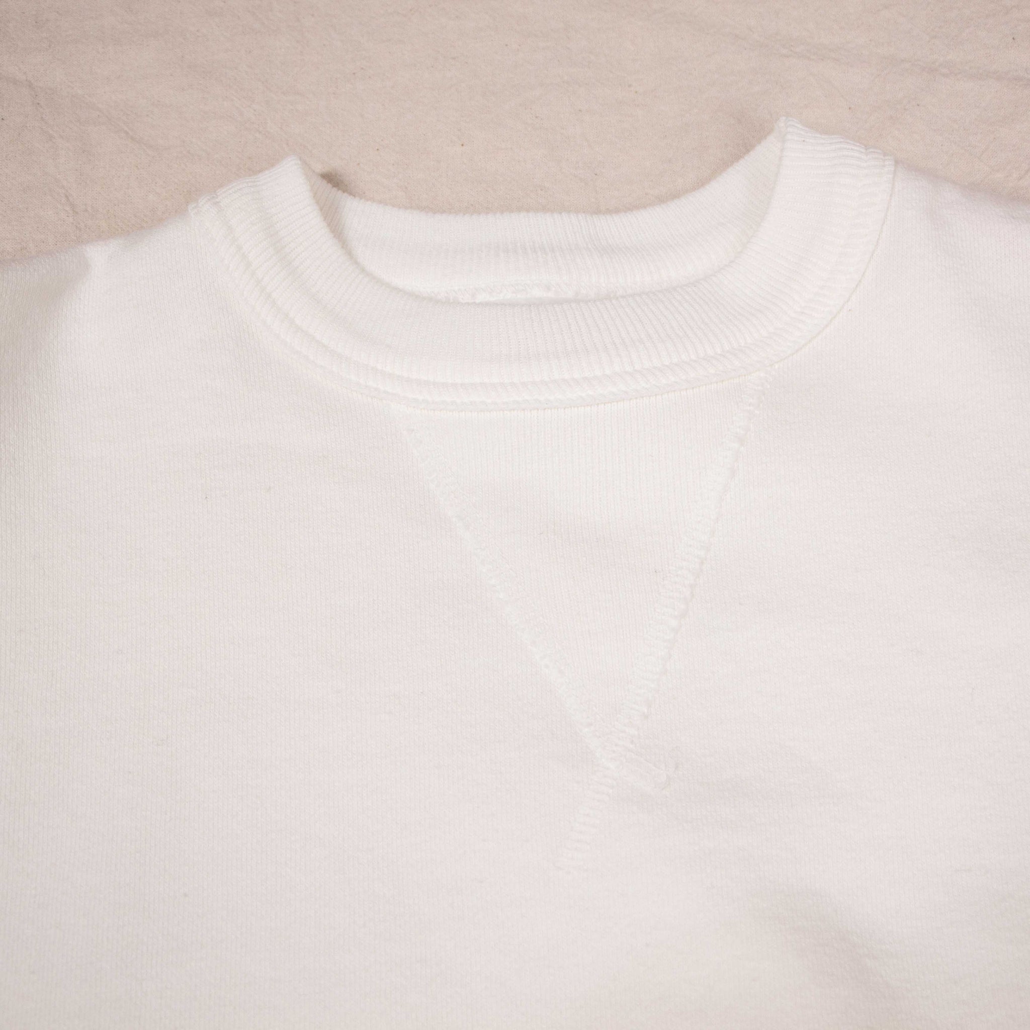 The Laniakea sweater from Sunray Sportswear is crafted from 450 gsm recycled Japanese cotton, offering superb comfort and a soft, heavy handle. It features a classic crew neckline with retro-inspired rib design and is cut in a relaxed, slightly boxy fit that is somewhat shorter than modern fits. The design includes vintage details such as a “Doritos” gusset at the neckline and a drop shoulder for ease of movement, blending 1950 American sportswear aesthetics with traditional Japanese craftsmanship using slow, heritage loopwheel knitting machines.