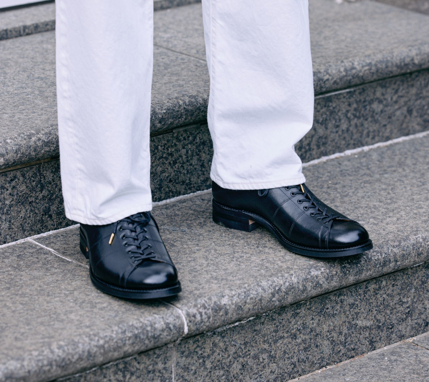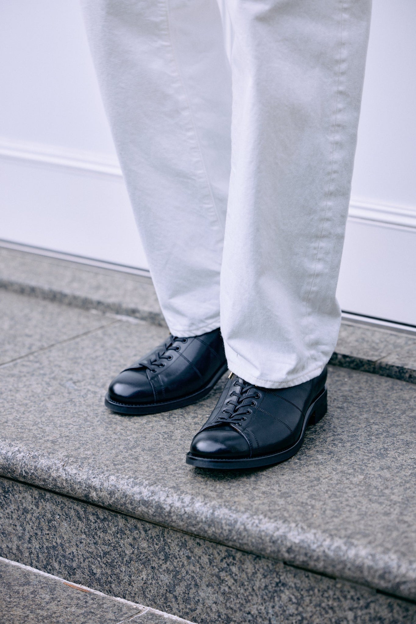 從鞋頭延伸至鞋面的九孔鞋帶設計,在德比鞋中相當少見,為整體增添經典氣息。這雙鞋特別推薦給想將靴款的份量感與德比鞋的優雅氣質融入日常穿搭的人。