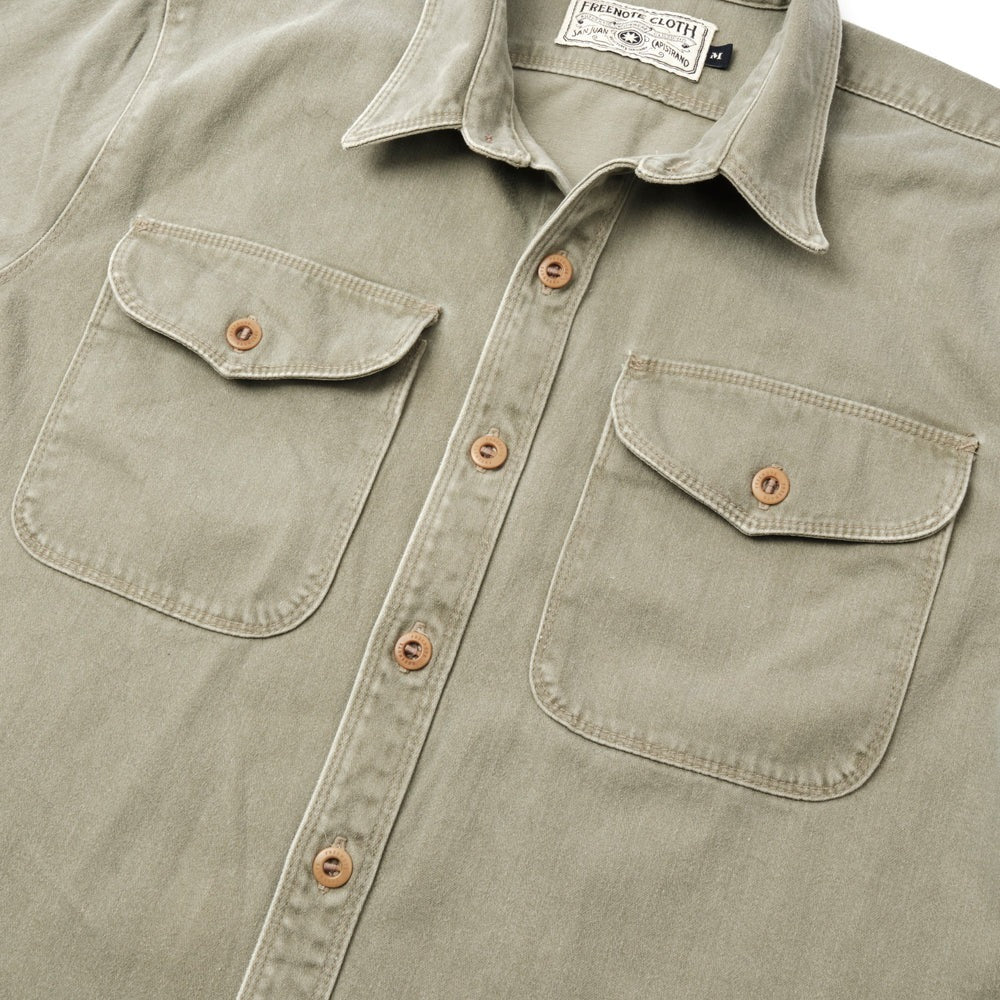 【Freenote】Utility Shirt Olive 石洗淺綠沙丁布工作襯衫