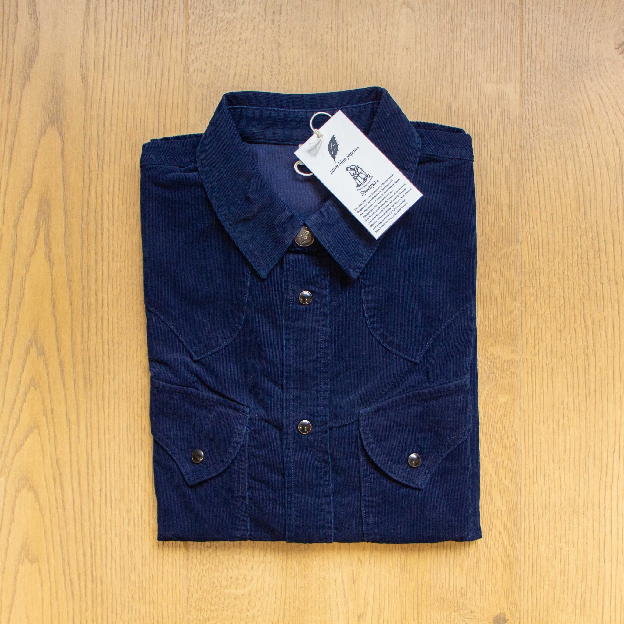 【Pure Blue Japan】Indigo Fine Corduroy Western Shirt 極細燈心絨靛藍染西部襯衫